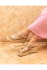 Brighton Gold Double Strap Wedge Espadrille Mule Sandal