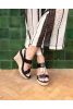 Wide Fit Bethany Black Hardware Detail Strap Wedge Sandal