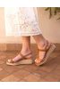 The Wide Fit Bridie sandals feature a low espadrille wedge heel, squared off toe shape and t bar upper design with feature studs for added detail. Upper: 100% Polyurethane, Lining: 100% Polyurethane, Outsole: 100% Rubber. Wipe clean only. Heel Height: 55mm