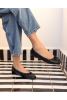 WIDE FIT FLORA Black Eyelet Detail Bow Flat Ballerina